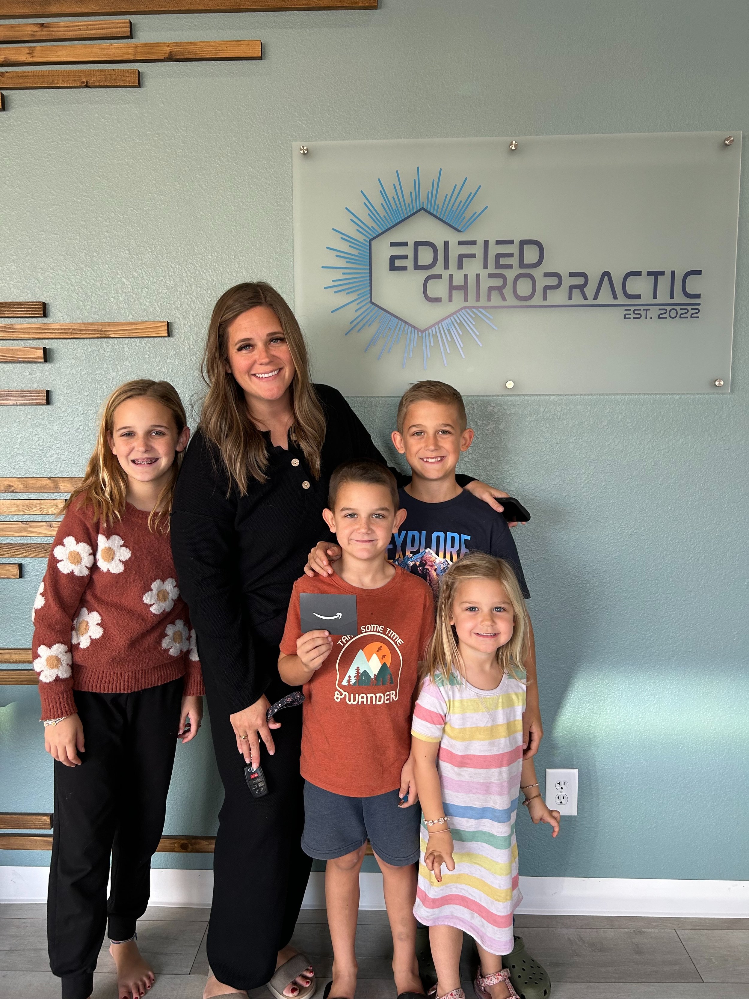 “I cannot recommend Edified Chiropractic enough! My journey began when my husband started seeing Dr. Todd and Dr. Carson for his low back issues. After a year of seeing his incredible progress, I decided to leave my chiropractor of 10 years to try them out myself. I am so glad I did! After just one visit, my hip pain and mobility improved overnight! I slept like a baby and felt significantly less stressed. 10 months into my chiropractic care I experiencing major dizzy spells that were later diagnosed as stress induced vertigo, and Dr. Carson went above and beyond to help me through that tough week, even offering to come in to the clinic outside of office hours. As someone who suffers from scoliosis, I often dealt with pain, numbness, and tingling in various parts of my spine and limbs. However, since seeing Dr. Carson and Dr. Todd, I have experienced little to no symptoms! Their tailored approach has made a world of difference in my daily life. We believe in their method so much that in January we decided to have all three of our kids see them too! Our six-year-old daughter suffered from over five ear infections in less than a year, but since seeing Dr. Carson and Dr. Todd, she has been 9 months without an ear infection! My two boys, aged 12 and 8, are high-energy, athletic kids who often experience aches, pains, and sleep troubles. I've noticed a remarkable improvement in my eight-year-old's growing pains, energy levels, and sleep quality. My 12-year-old has also improved his ability to handle stress and has gained strength and mobility in both his upper and lower back. They truly restored my faith in healthcare. My husband and I are forever grateful for everything they’ve done for us. Thank you, Dr. Todd and Dr. Carson, for all that you do!”